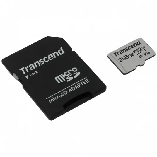 256GB MicroSD (Class 10) UHS-I (U3) +SD adapter, Transcend "TS256GUSD300S" (R/W:95/40MB/s)