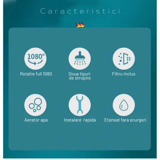 Adaptor apa baterie universal, rotativ pivotant in orice directie, functie economizor, doua moduri dus si bule, cromat, Negru