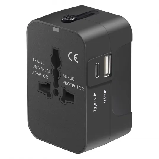 Adaptor de calatorie universal, cu porturi USB-C si USB-A, protectie multipla, negru, 3x1.5x1.9 inchAdaptor de calatorie universal, cu porturi USB-C si USB-A, protectie multipla, negru, 3x1.5x1.9 inch223323731223323731