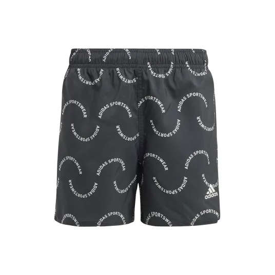 adidas Sportswear, Pantaloni scurti de baie cu imprimeu logo WVE CLX, Alb, Negru stins, 128 CM