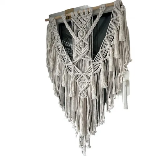 Agatator de perete macrame, decor boho cu ciucuri, alb, 78x50cm
