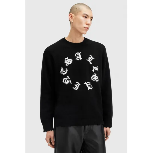 AllSaints, Pulover din amestec de lana cu decolteu la baza gatului, Negru, L