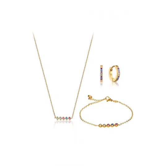 Amelia Parker, Set de colier, cercei si bratara, Auriu, Multicolor