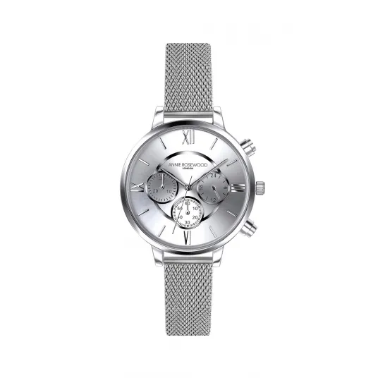 Annie Rosewood, Ceas cronograf cu bratara metalica cu model plasa, Argintiu