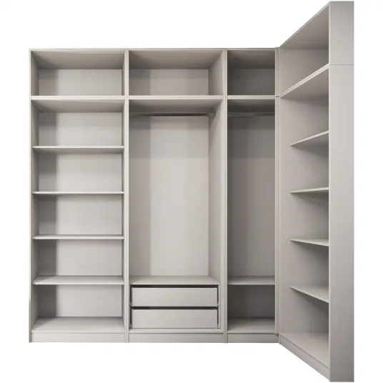 Ansamblu dulap de colt fara usi Irim Anouk, 253x505x133 cm, 2 sertare, culoare Alb