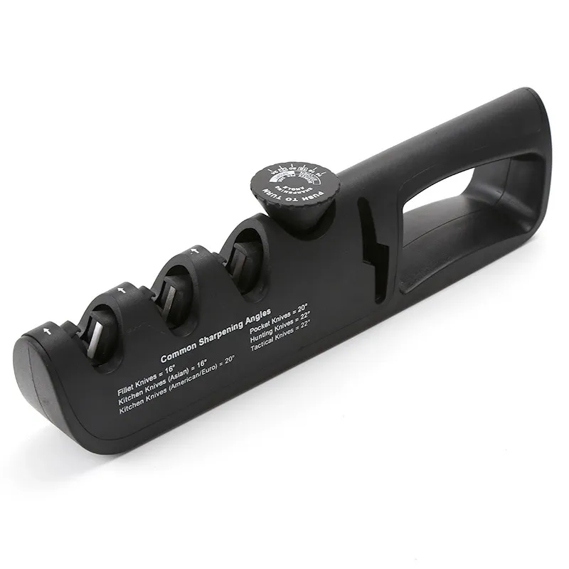 Aparat Profesional Manual Pentru Ascutit Cutite, 4 in 1, cu buton cu unghi reglabil, simplu si rapid, Negru