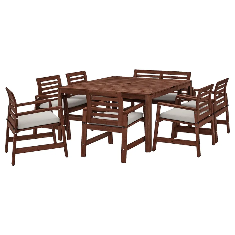 IKEA APPLARO Masa+6scaune cu brate+banca, ext, vopsit maro/FrOsOn/Duvholmen bej