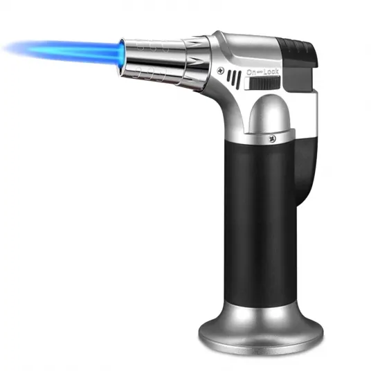 Arzator portabil de flambat, Axroad Mall, MaxIm 1300 grade C, Cu Blocare de siguranta si Flacara reglabila, Fuctioneaza cu gaz, Reutilizabile, Pentru deserturi, gratar, coacere, ABS/Aliaj de zinc, 130x86x30mm, Argintiu