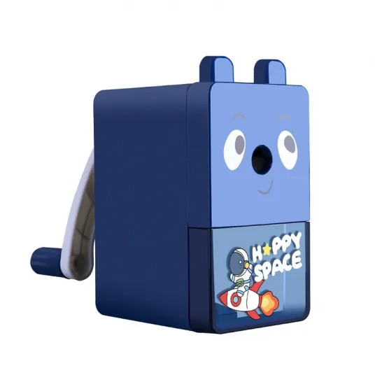 Ascutitoare creioane, Cu manivela, Recipient, Plastic, Albastru inchis