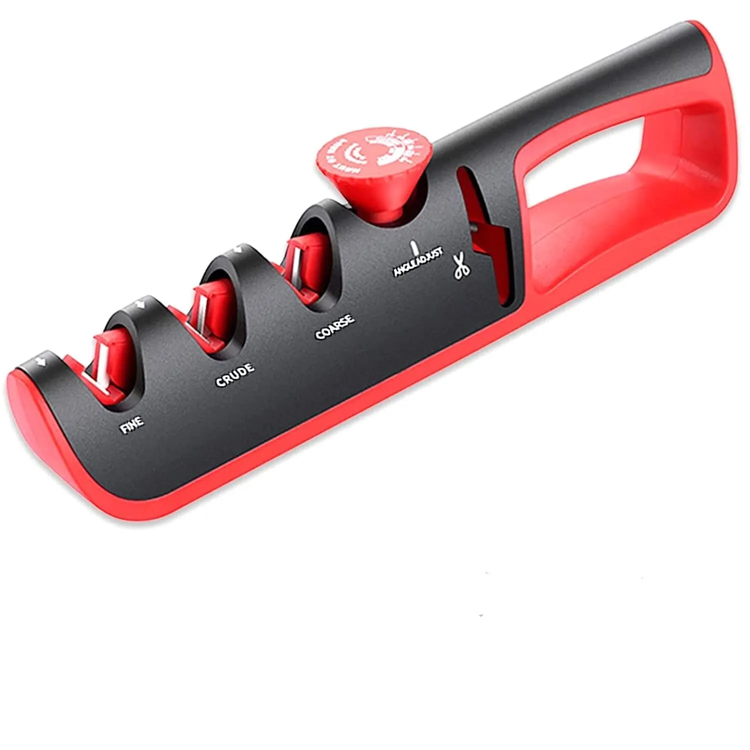 Ascutitor de cutite, Kron, 4in1, Ajustabil, Negru/Rosu