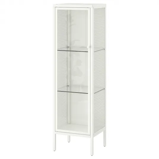 IKEA BAGGEBO Corp are un design minimalist care se imbina perfect cu orice stil de decor. Masoara 34x30x116 cm, facandu-l perfect pentru spatii mici. Cadrul si picioarele metalice au un finisaj alb impecabil, in timp ce usile sunt din sticla calita, ceea ce ii confera un aspect sofisticat.