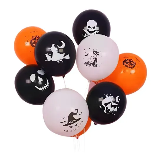 Baloane de Halloween, Nozibye, consumabile pentru decorarea petrecerilor, grafica de liliac infricosator, 12'', 50 de conturi, portocaliu si alb si negru, noda si tub gonflabilBaloane de Halloween, Nozibye, consumabile pentru decorarea petrecerilor, grafica de liliac infricosator, 12'', 50 de conturi, portocaliu si alb si negru, noda si tub gonflabil223187045223187045