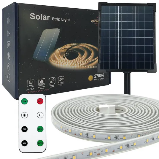 Banda Led Solara Exterior 10 metri 3.2V 4000mAH, Lumina Soarelui in aer liber, 60Leds/M, Telecomanda, 12H timp de lucru, Lumina Calda 2700K