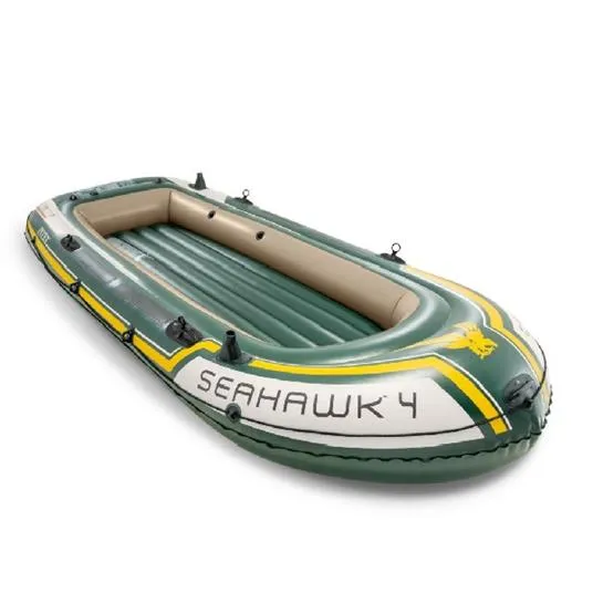 Barca Gonflabila SEAHAWK 4 este construita pentru a rezista, avand o constructie rezistenta din PVC, care poate face fata aproape oricarei conditii. Barca este construita cu mai multe camere de aer care asigura siguranta maxima si flotabilitate in caz de intepaturi sau scurgeri. Cu o capacitate de greutate de pana la 880 de livre, poate tine cu usurinta pana la patru adulti sau o familie cu copii.