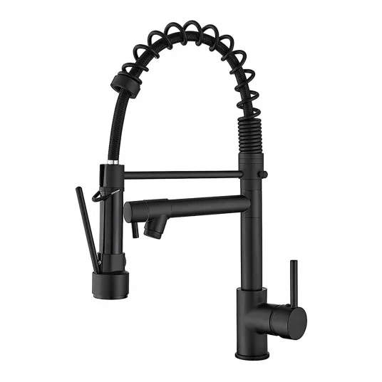 Baterie bucatarie, cu dus extractabil, 360 de grade, pipa suplimentara, otel inoxidabil, Monocomanda, Racorduri Incluse, LEIISVK, negru mat