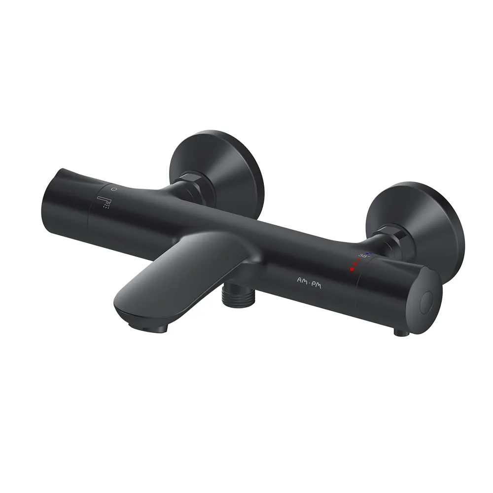 Baterie cada cu termostat AM.PM Like FLA50022 cartus termostatic, limitator de temperatura 38°C, montare perete, 1/2'', diverter, aerator, negru