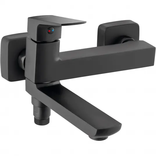 Baterie cada/dus pentru perete Ferro Vitto VerdeLine, cu set de dus si pipa comutator, monocomanda, cartus ceramic, aerator, racord excentric, limitator debit, Negru