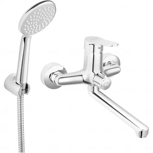 Baterie cada/dus pentru perte FerroIsso, monocomanda, pipa mobila, cartus ceramic, aerator, Crom, set de dus inclus