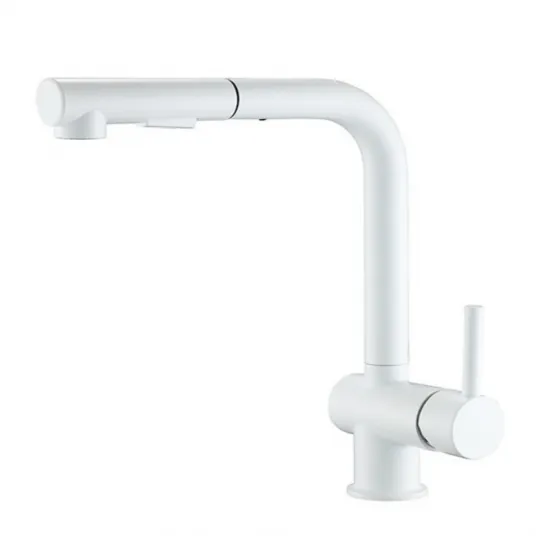 Baterie chiuveta bucatarie alba, cu dus extensibil, 2 tipuri de jet, cartus ceramic