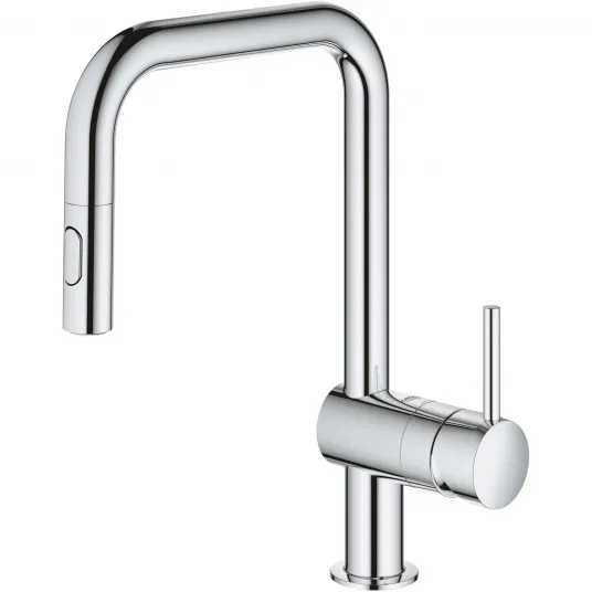 Baterie de bucatarie Grohe Minta 32322002, 3/8'', monocomanda, pipa inalta, dus extractabil, Crom
