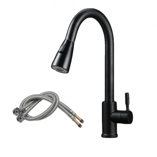Baterie de bucatarie, WALALLA, Inox, Dus extensibil, Rotire 360, Negru