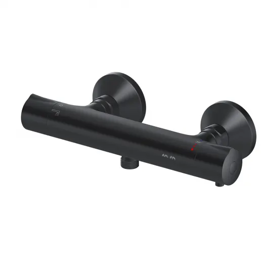 Baterie dus AM.PM Like FLA40022, 1,2", rozete metalice, termostat cu sistem anticalcar, limitator de temperatura 38В°C, opritor de siguranta, alama, Negru Mat