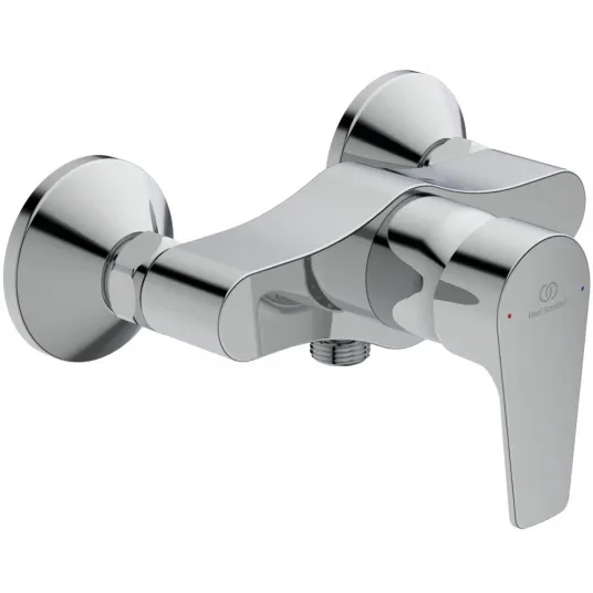 Baterie dus Ideal Standard Cerafine D BC493AA, montaj pe perete, cartus ceramic 38 mm FirmaFlow cu limitator de apa calda, crom