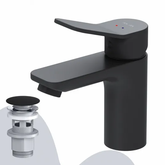 Baterie lavoar AM.PM X-Joy FXA82122 cu supapa de evacuare, monocomanda, 3/8'', aerator, cartus ceramic, Negru mat