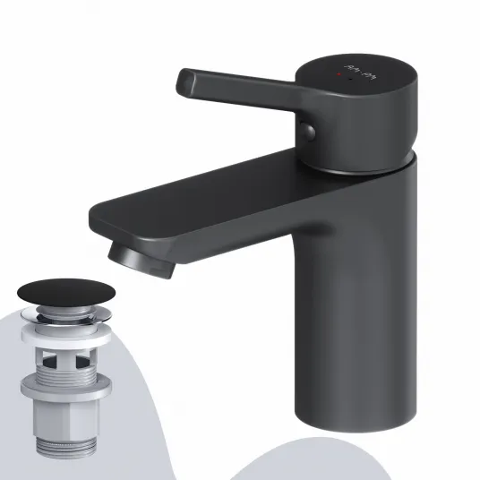 Baterie lavoar AM.PM X-Joy S FXB82122, 3/8", monocomanda, cu supapa de evacuare, cartus ceramic SoftMotion 35 mm, Neoperl Aerator, Alama, Negru Mat