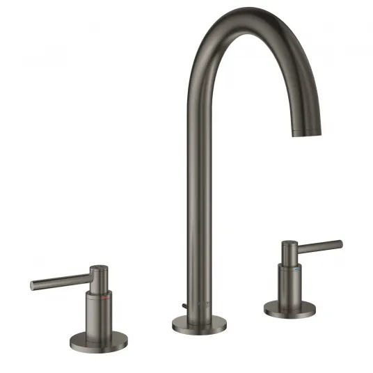 Baterie lavoar Grohe Atrio 20009AL3, 1/2'', montare pe blat, marimea M, dubla comanda, pivotanta, evacuare cu tija, mat, hard graphite