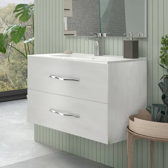 Baza mobilier suspendat Kring, cu doua sertare si lavoar ceramic, 81x53x46.5cm, alb