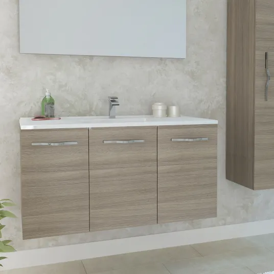 Baza mobilier suspendat Kring, cu trei usi si lavoar ceramic, 101x53x46.5cm, stejar