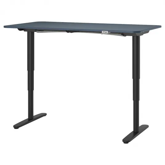 IKEA BEKANT Birou cu inaltime reglabila, linoleum albastru/negru, 160x80 cm