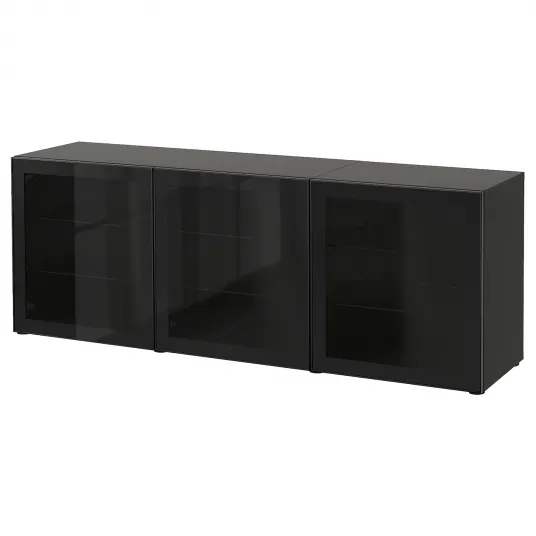 IKEA BESTA este conceput pentru a completa orice decor de casa. Designul sau simplu, dar elegant, il face un plus perfect pentru orice camera. Finisajul negru-maro nu este doar elegant, ci si durabil. Usile din sticla transparenta adauga o nota de rafinament unitatii, permitandu-va in acelasi timp sa expuneti piesele preferate de decor.