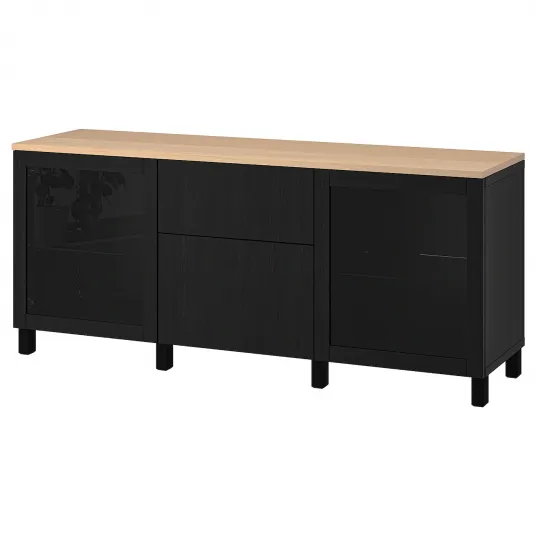- Nume produs: IKEA BESTA Ansamblu depozitare+sertare Sindvik negru/Lappviken/Stubbarp negru-maro 180x42x76 cm
