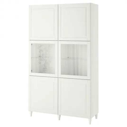 - Nume produs: IKEA BESTA Ansamblu depozitare+usi sticla alb Smeviken/Ostvik sticla alb 120x42x202 cm