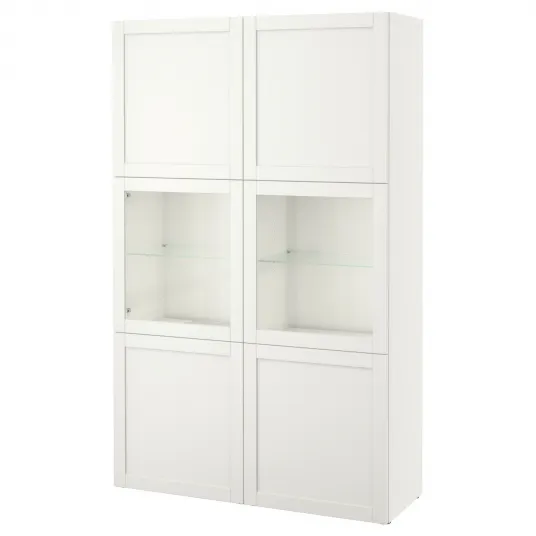 Ansamblul de depozitare IKEA BESTA cu usi din sticla alba Hanviken/Sindvik sticla alb 120x42x193 cm este solutia perfecta pentru oricine doreste sa-si pastreze casa organizata fara a sacrifica stilul. Rafturile sale personalizabile, designul elegant si spatiul de depozitare amplu il fac o achizitie excelenta pentru orice casa moderna.Deci, de ce sa asteptati? Ia-l pe al tau astazi si bucura-te de un spatiu de locuit ingrijit si elegant!