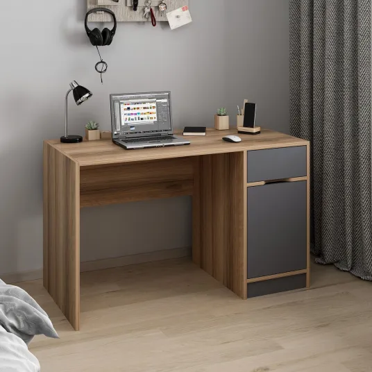 Spune -i la revedere de la dezordine si dezorganizare cu biroul nostru de studiu spatios, cu un spatiu de depozitare suficient pentru toate cartile, papetarie si dispozitive electronice. Combinatia de culori antracite si dore adauga o nota de sofisticare in zona dvs. de studiu, ceea ce o face un loc in care veti dori de fapt sa petreceti timp.