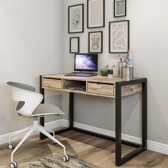 Biroul nostru de studiu nu este doar o piesa de mobilier, ci un instrument care va va ajuta sa va atingeti obiectivele academice. Cu designul sau elegant si modern, adauga o nota de eleganta in orice camera, creand un mediu propice invatarii. Combinatia de culori pin atlantic si negru ii confera un aspect industrial care este atat la moda, cat si atemporal.