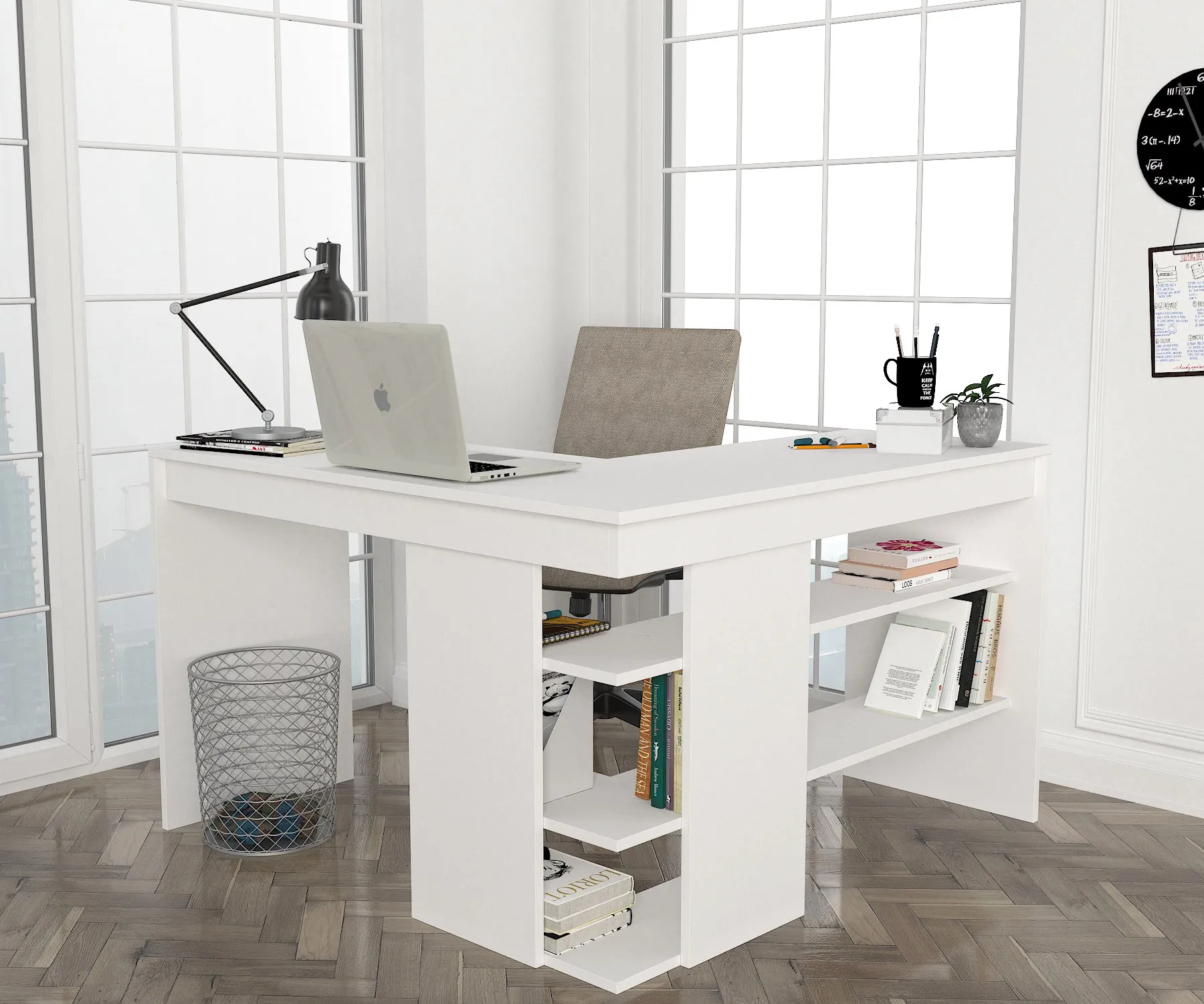 Cu culoarea sa alba solida si conceptul modern de noutate, biroul nostru de studiu se integreaza fara efort in orice stil de design interior. Fie ca aveti o tema minimalista, contemporana sau eclectica, acest birou completeaza mobilierul existent si adauga o nota de rafinament spatiului dvs.