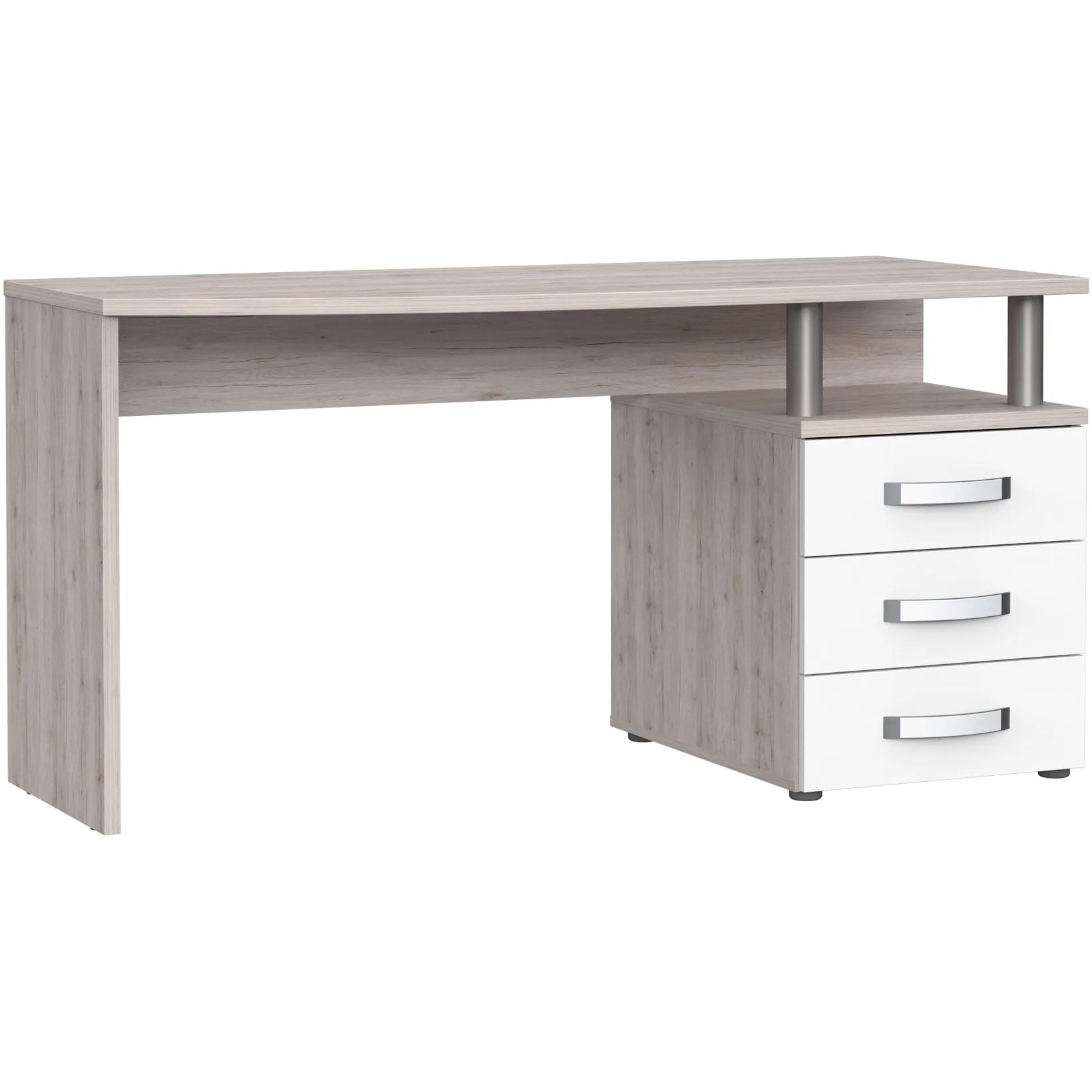 Birou Forte Rondino, dimensiuni 138x 59.9x 70.2, stejar nisipiu/ alb lucios