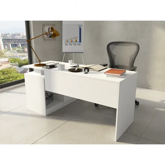 Un spatiu de lucru fara dezordine este esential pentru productivitate. Birou Kalune Design Virgo intelege aceasta nevoie si ofera spatiu amplu de depozitare pentru a va mentine lucrurile esentiale organizate. Biroul are o masa spatioasa, perfecta pentru a va intinde materialele de lucru. In plus, include sertare si rafturi unde puteti depozita documente, articole de papetarie si alte rechizite de birou. Spune la revedere birourilor dezordonate si saluta un spatiu de lucru organizat si eficient.