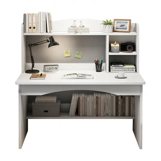 Birou, masa de lucru, birou pentru gaming, cu rafturi, etajere si usa de dulap, 100Г—48Г—120cm, alb