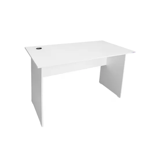 Birou Office alb cu trecere pentru cabluri in blat, fabricat din PAL melaminat cu grosimea de 16 mm, capacul este cantuit cu cant ABS cu grosimea de 2 mm pentru o rezistenta sporita la uzura, picioruse din plastic cu rol impotriva zgarierii pardoselilor. Latime: 130 cm, Inaltime: 75 cm, Adancime: 70 cm
