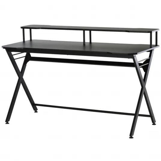 Ecco una scrivania pratica e funzionale per tutti gli amanti dei videogiochi! È dotata di un piano rialzato su cui puoi sistemare uno o più monitor, e mantenere una postura corretta durante le ore passate al computer. Il piano di lavoro è ampio e versatile: puoi usarlo per posizionare il PC, il mouse e la tastiera. Inoltre, include un pratico gancio laterale per appoggiare le cuffie e averle sempre a portata di mano. La superficie è costruita in MDF e le gambe sono in metallo per offrirti il massimo della stabilità.