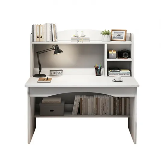 Birou pentru gaming, birou, masa de lucru, cu rafturi, etajere si usa de dulap, 100Г—48Г—120cm, alb