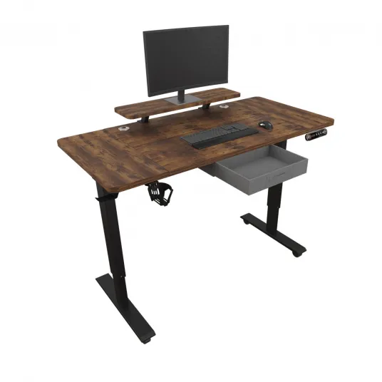 Birou reglabil electric pe inaltime, Gudewill, MDF/Otel, Cu inaltime reglabila electric, Top 140x76cm, Masa cu laminat si sertare, Functii de Memoriea, Maro
