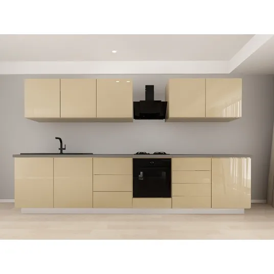 Blanca 5 MDF Cappuccino Lucios - Set Mobila Bucatarie Modulara Moderna MDF 3.6m Premium Configurabila deschidere prin apasare Fara Manere/Push to Open design personalizabil - Hulgo Mobili