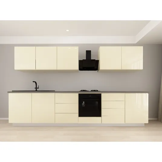 Blanca 5 MDF Crem Lucios - Set Mobila Bucatarie Modulara Moderna MDF 3.6m Premium Configurabila deschidere prin apasare Fara Manere/Push to Open design personalizabil - Hulgo Mobili