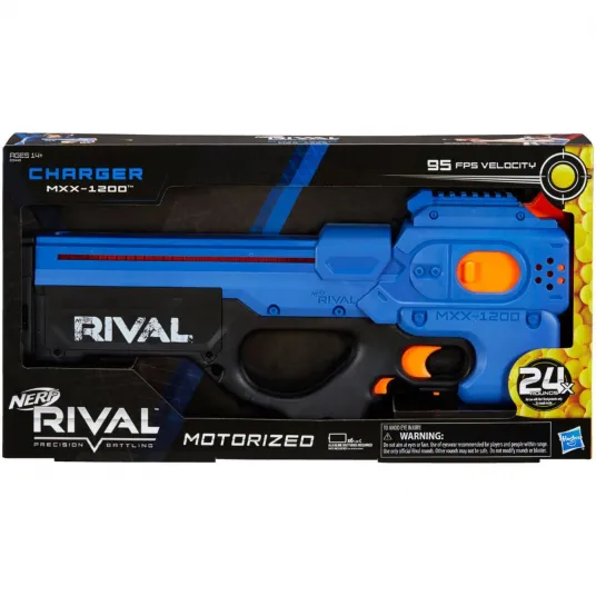 Arma Nerf Rival Charger este o arma automatizata cu baterie si tragere rapida, prevazuta cu un incarcator integrat pentru 12 bile. impreuna cu arma, primesti 24 de bile Nerf Rival, pe care le incarci direct in arma prin orificiul din partea superioara. Tot ce trebuie sa faci acum este sa accelerezi motoarele cu ajutorul butonului de pe maner si sa apesi pe tragaci. Arma Charger functioneaza cu 6 baterii LR14 (tip C), vandute separat.